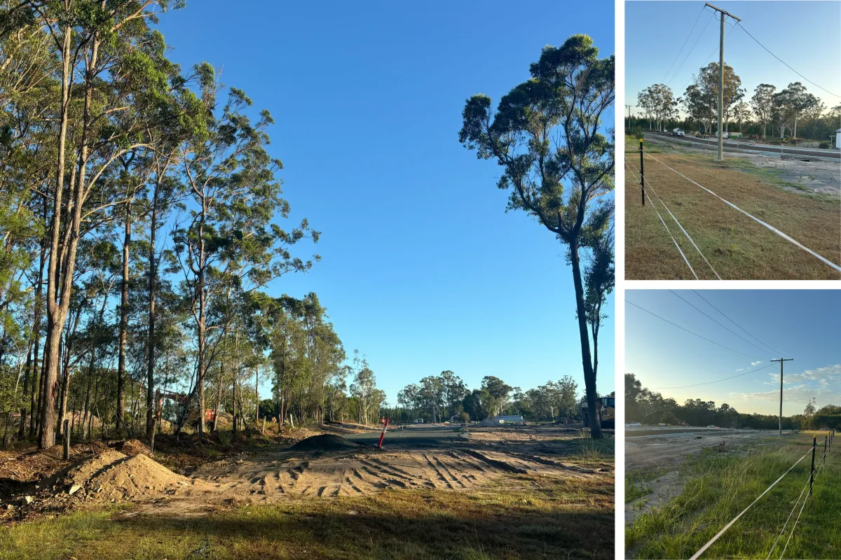 Once civil works are finalised, white post and rail fencing and lot tidying will commence as the next phase of finishing works.